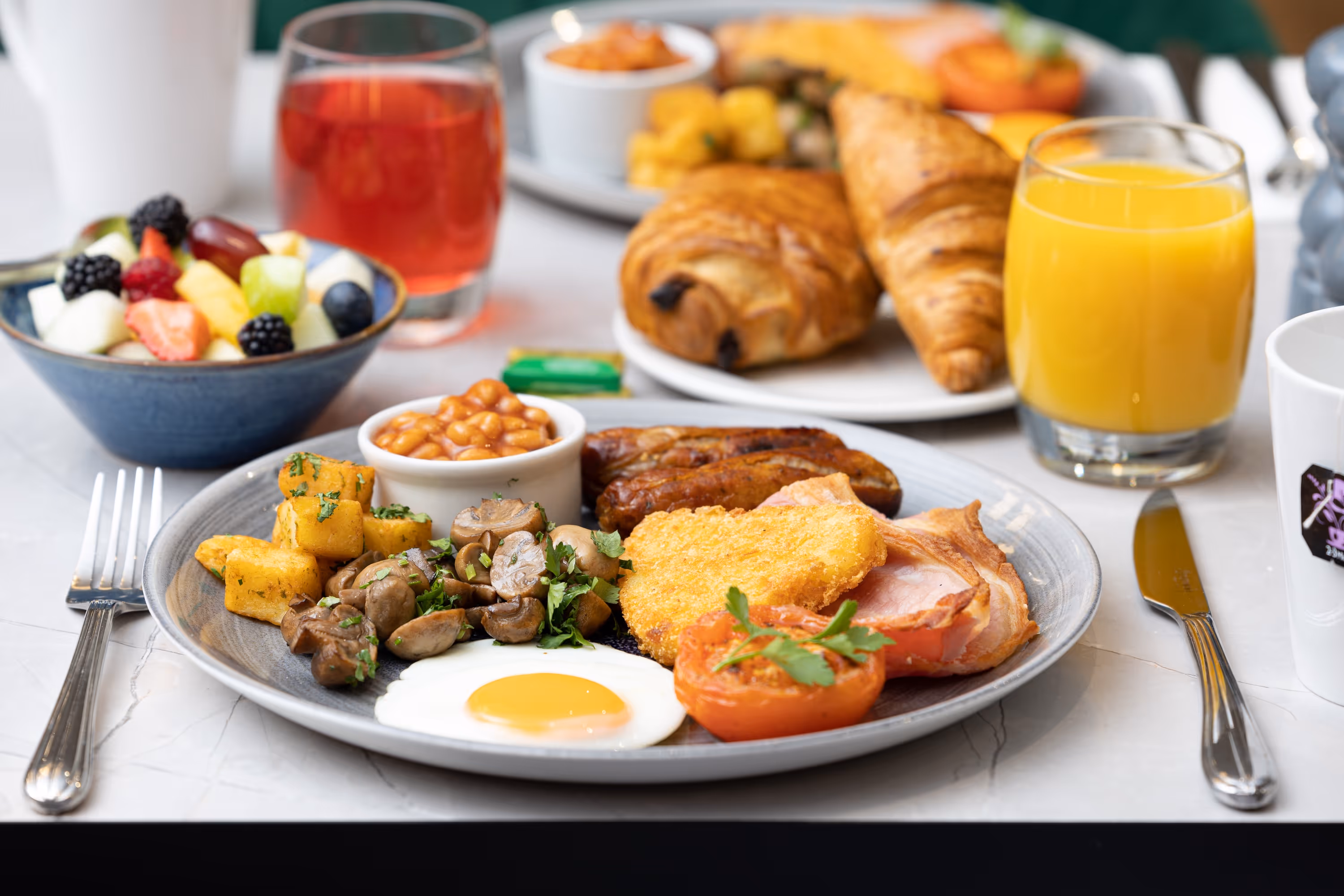 Start your day off in the best way with a delicious hot breakfast in our cosy and comfortable Meadow - Kitchen | Bar | Terrace. Whether you love a big full English breakfast or if you prefer a lighter, continental option we have plenty to choose from to help fuel the day ahead. We serve a buffet breakfast with a full selection of hot and cold items alongside a selection of drinks such as tea, coffee and fruit juices.